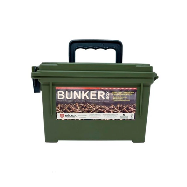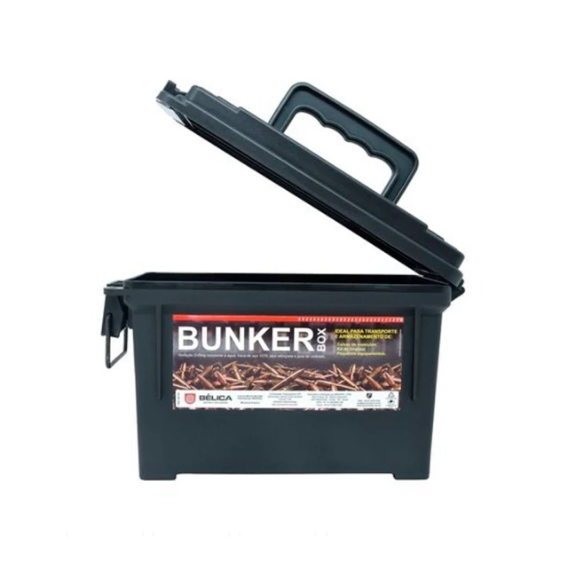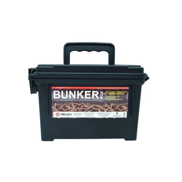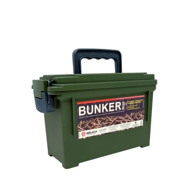 A Caixa Bunker Box Bélica oferece o conceito das famosas caixas militares para armazenamento e transporte de munições, kits de limpeza e pequenos equipamentos indispensáveis para sua missão. Construída em polímero, possui vedação O-Ring, trava de aço 1070, alça reforçada e guia de cadeado, mantendo seu equipamento mais seguro.