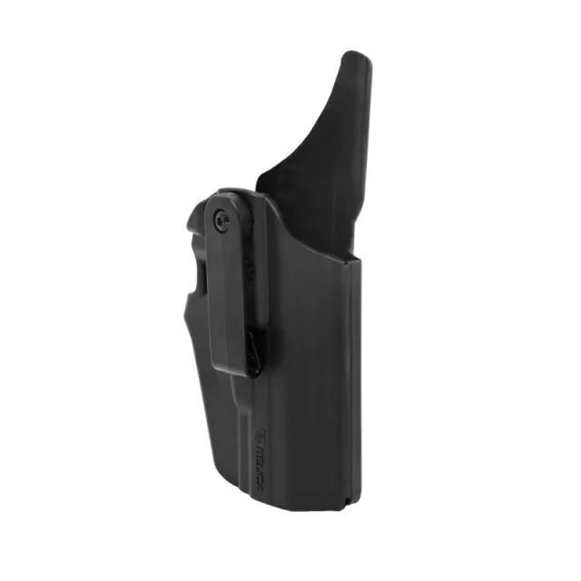 - Sistema de catraca rotativa que possibilita a rotação do coldre, permite ajuste do ângulo e maior conforto no saque da arma;