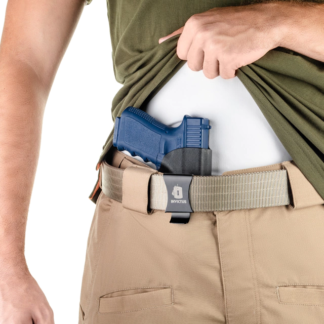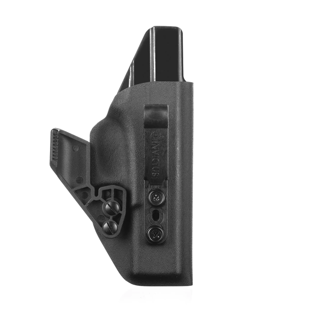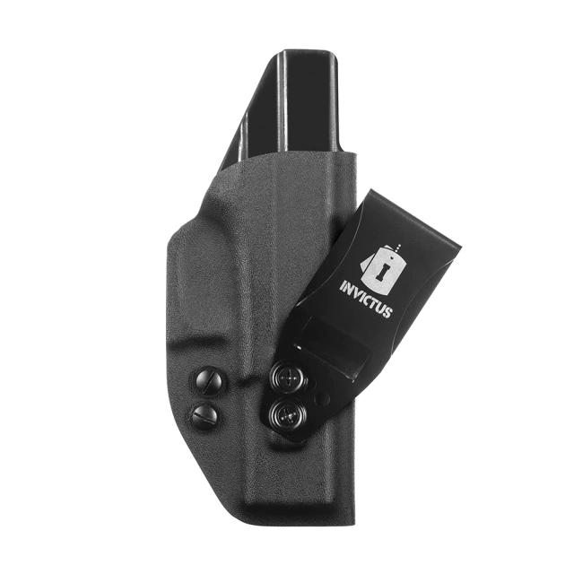 O Coldre GLOCK® Kydex® Iwb Canhoto Standard INVICTUS têm tecnologia Kydex® USA, um produto diferenciado no meio tático, para operadores e operadoras que exigem o melhor, sempre. O Kydex® não deforma, não propaga chamas e é extremamente resistente ao impacto. Com duas opções de clip, um em polímero (POM), muito resistente, e outro clip metálico em aço inoxidável, com ajuste de ângulo. Ambos os clips possuem regulagem de altura. Os modelos ainda contam com redutor de volume, que pode ser retirado se necessário, e ajuste de retenção, com kit extra de parafusos.