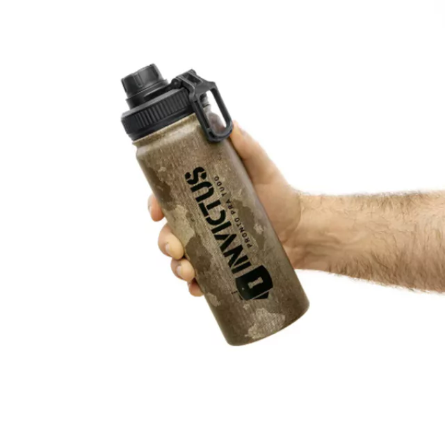 Corpo da garrafa fabricado em Aço Inox 304 SUS, livre de substâncias cancerígenas.